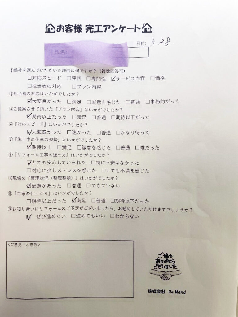 ご無沙汰しております、西淀川区のリフォーム専門店「リメンド」沖さんです。